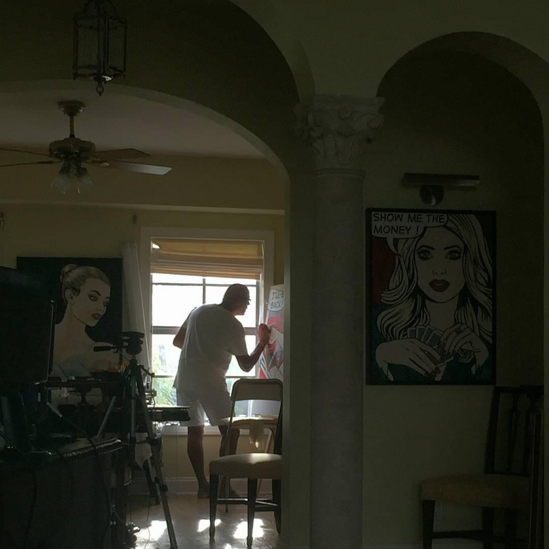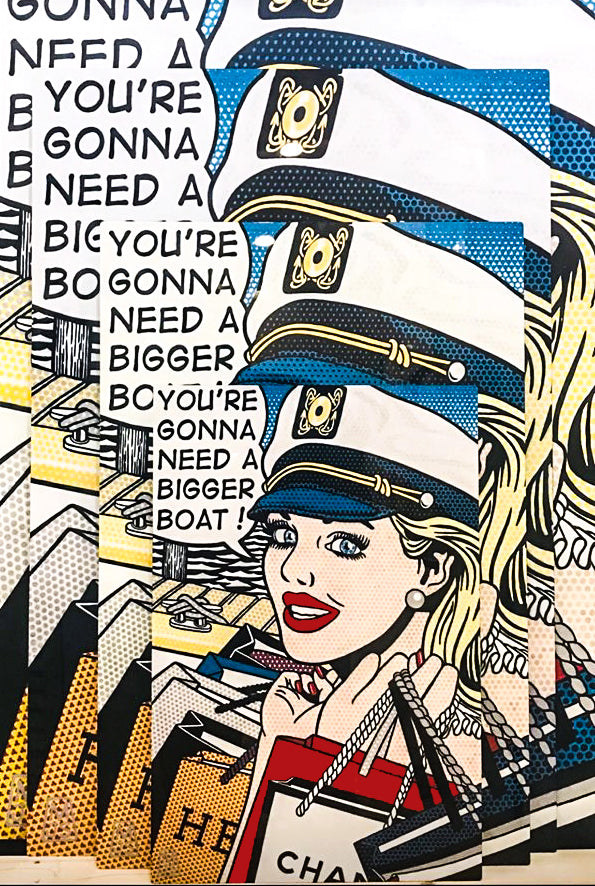 Smith's painting style derives from 1960s romance comics, incorporating bright, bold colors, dramatic in scope and predominantly feature sultry, flirty and empowered women in a series of situations and environments. The Ben-Day dot process, where equal sized dots are equally spaced or overlapped, was something that fascinated Smith...