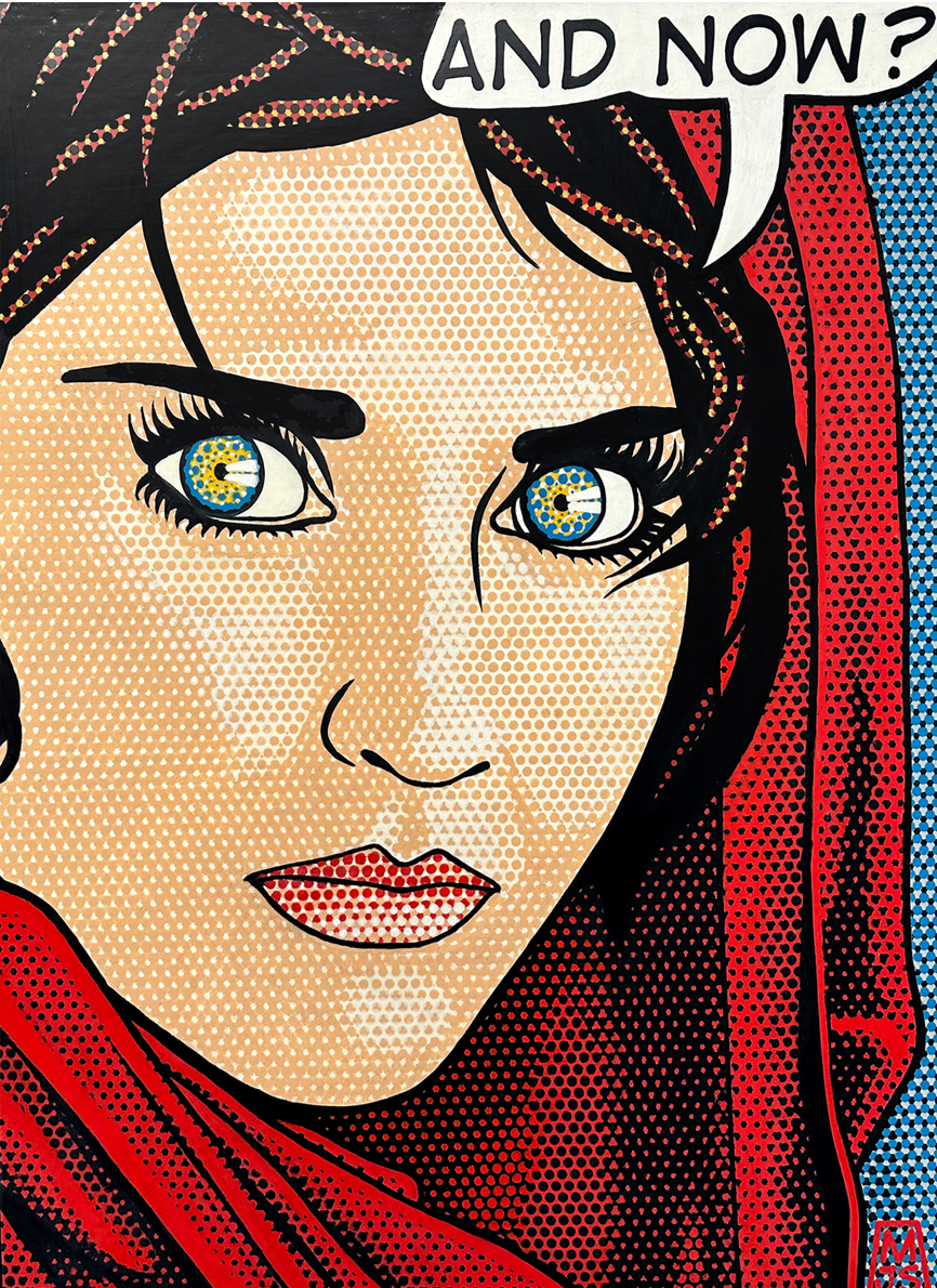 Inspired by the iconic portrait of Sharbat Gula photographed in a refufee camp by photo journalist Steven Curry and appearing on the National Geographic magazine cover June 1985