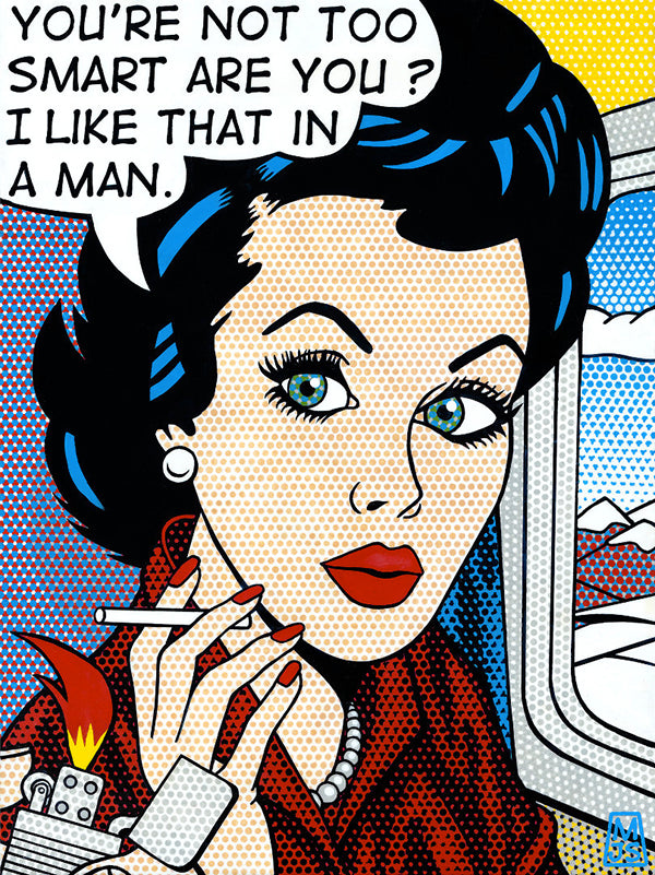 Comic-art painting in ben-day dot style, using classic movie quotes with a new spin in different settings.